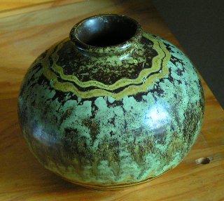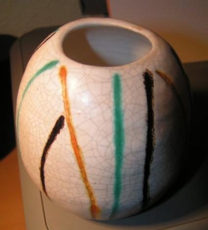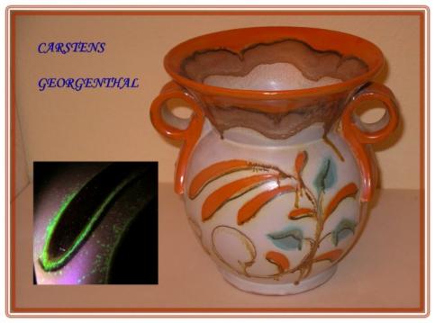 Auch diese große, impulsstarke Vase von Carstens Georgenthal zeigt das Phänomen an den Rändern der Bemalung.