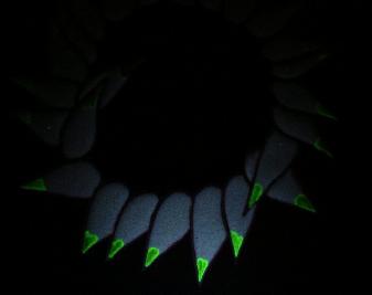 Sehr schöner fluoreszierender Hof an den Rändern der Uranglasur...